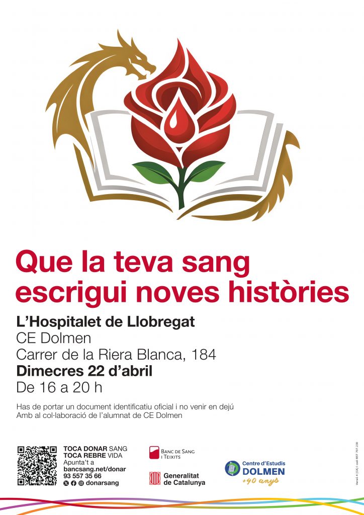 El 22 d’abril 2026, que la teva sang escrigui noves històries! Campanya ApS de Donació de Sang CE Dolmen amb el Banc de Sang i Teixits